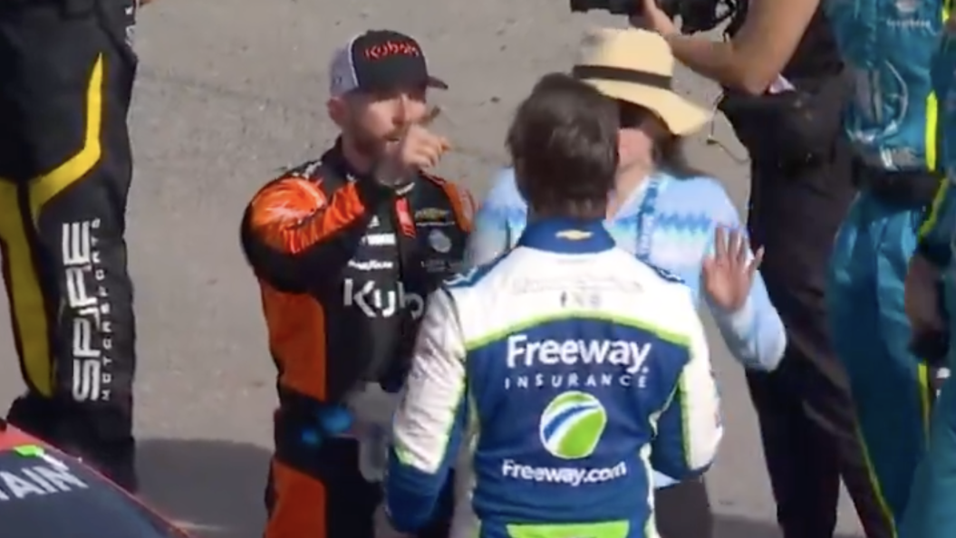 An official and a Trackhouse Racing crew member also stepped in as the two drivers continued with their argument at Las Vegas Motor Speedway. They ultimately separated without the altercation turning violent.