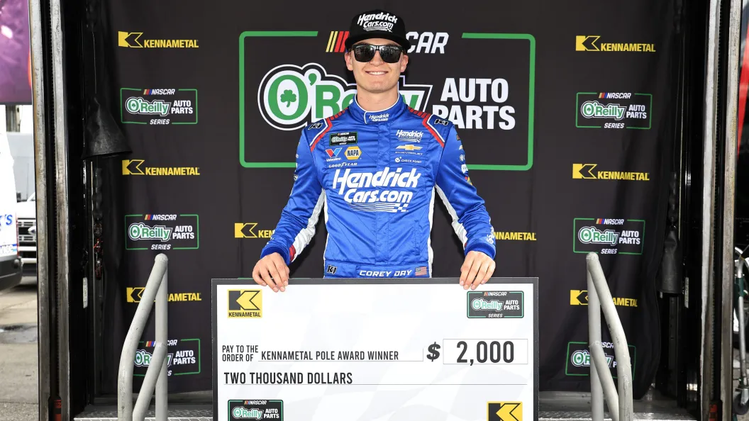 Hendrick Motorsports developmental driver Corey Day won the pole at the historic North Carolina track. He posted a lap of 22.717 seconds. This marks his first career pole win in 19 career races.