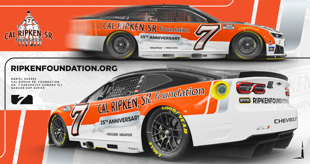 According to a press release, Daniel Suarez and Spire Motorsports will have the Cal Ripken Sr. Foundation as a primary sponsor in multiple events this season. This schedule will start with the Clash as Suarez shows off the orange and white No. 7 Chevrolet.